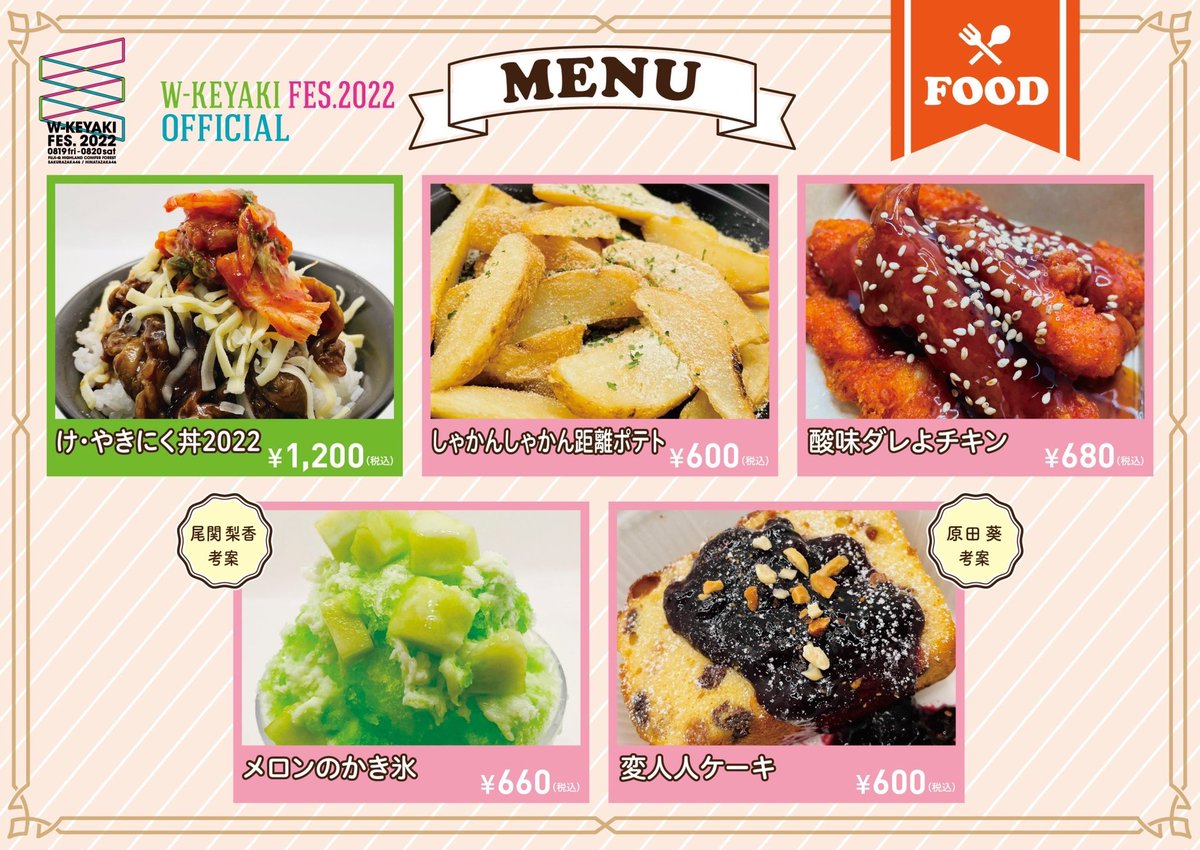 8月19日(金),20日(土)開催の「W-KEYAKI FES.2022」櫻坂46振替公演にてオフィシャルフード&ドリンクの販売が決定致しました🍟🍹